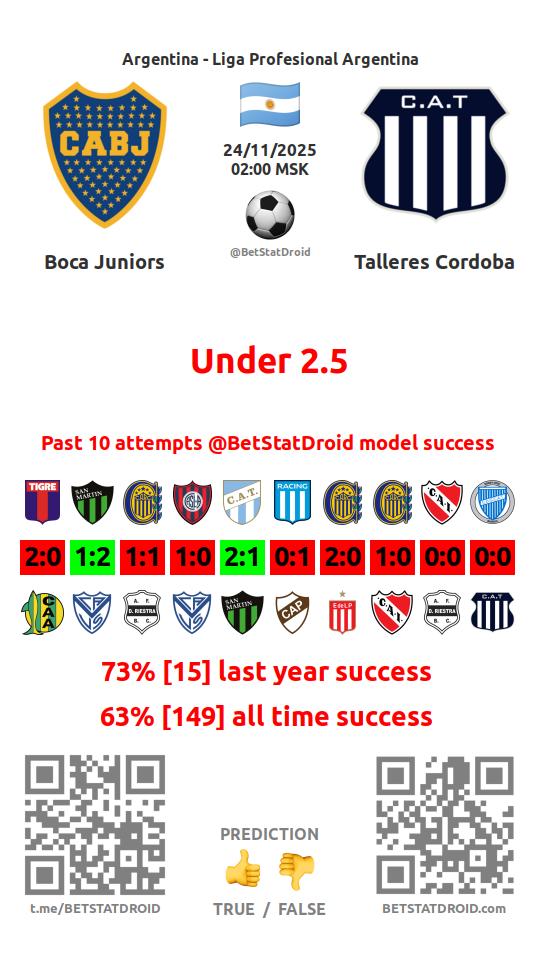 ✔ Бока Хуниорс забивает меньше 2,5 голов в 11 матчах