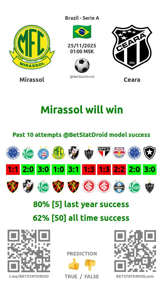 ✔ Мирассол пропускает меньше 2,5 голов в 18 матчах