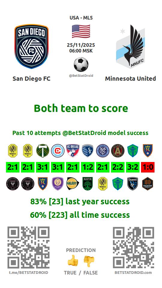 ✔ Сан-Диего забивает больше 1,5 голов в 5 матчах