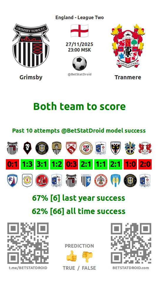 ✔ Гримсби забивает меньше 2,5 голов в 9 матчах