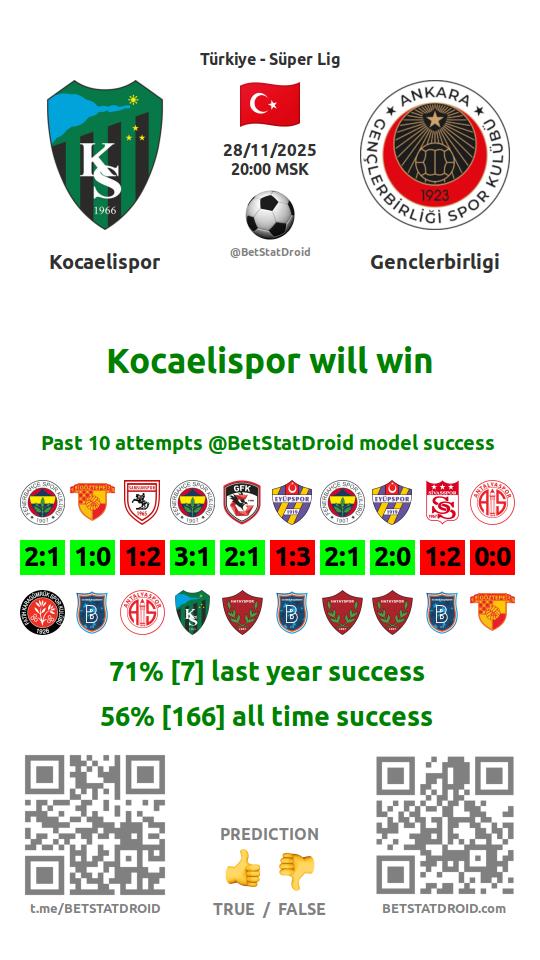 ✔ Генчлербирлиги забивает меньше 2,5 голов в 28 матчах