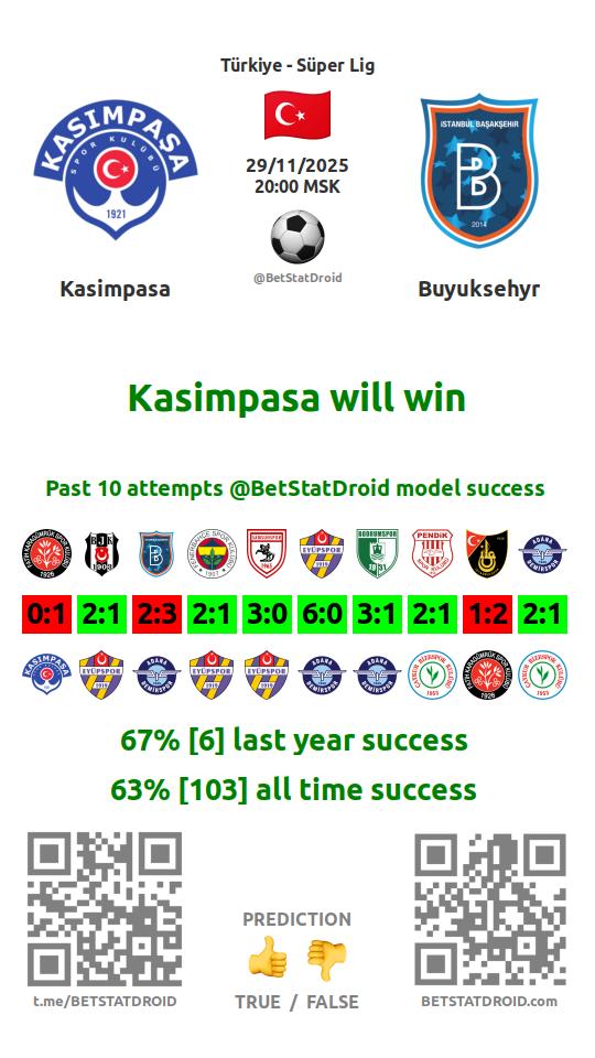 ✔ Касымпаша забивает меньше 2,5 голов в 16 матчах