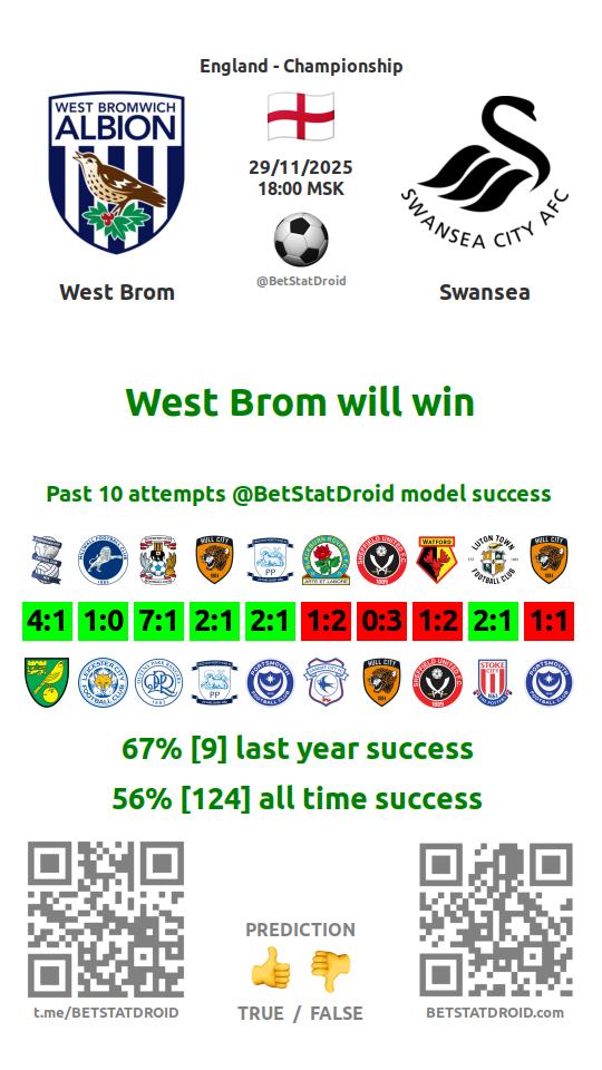 ✔ Вест Бромвич забивает меньше 2,5 голов в 8 матчах