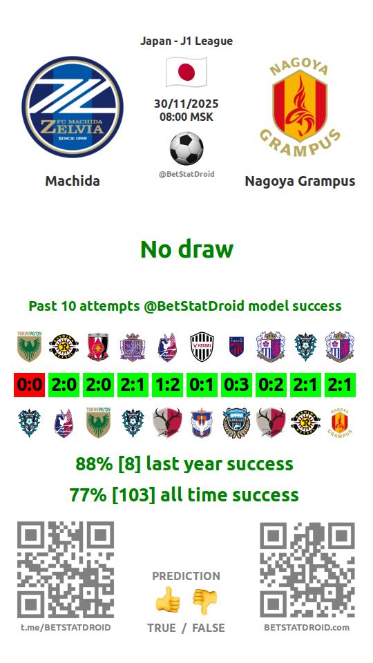 ✔ Нагоя Грампус забивает меньше 2,5 голов в 10 матчах