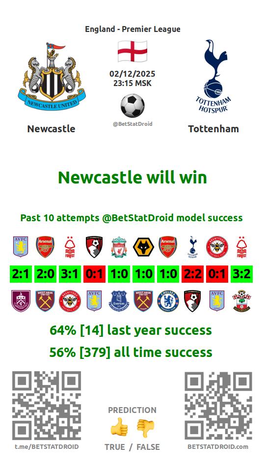 ✔ Ньюкасл забивает меньше 2,5 голов в 8 матчах
