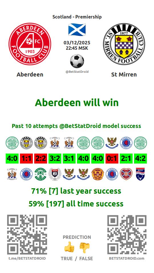 ✔ Абердин забивает меньше 1,5 голов в 6 матчах