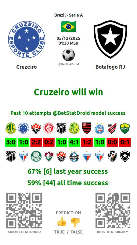 ✔ Крузейро пропускает меньше 2,5 голов в 67 матчах