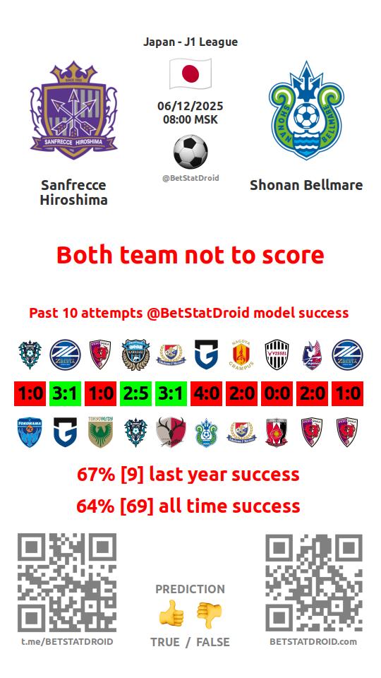✔ Санфречче Хиросима забивает меньше 2,5 голов в 8 матчах