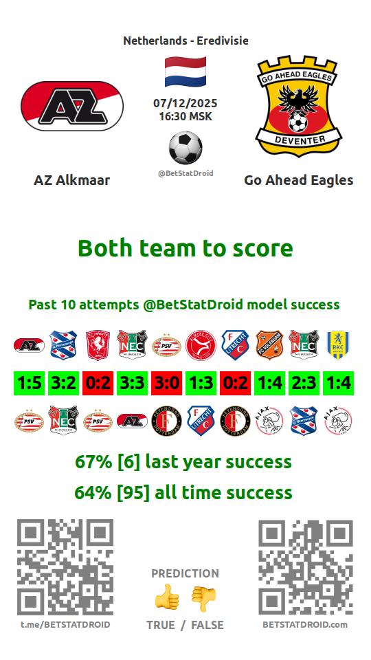 ✔ АЗ Алкмар забивает больше 1,5 голов в 12 матчах