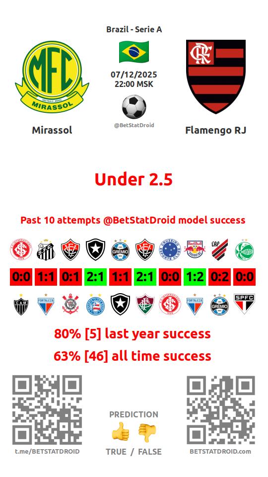 ✔ Фламенго пропускает меньше 2,5 голов в 49 матчах