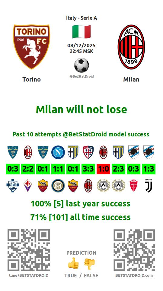 ✔ Торино забивает меньше 2,5 голов в 25 матчах