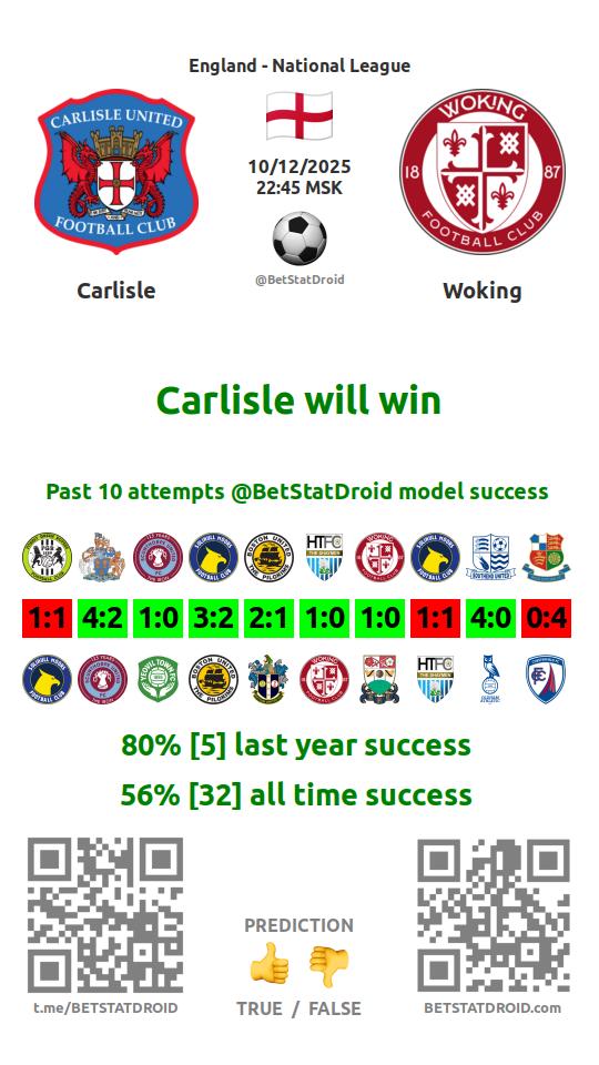 ✔ Карлайл Юнайтед пропускает меньше 2,5 голов в 10 матчах