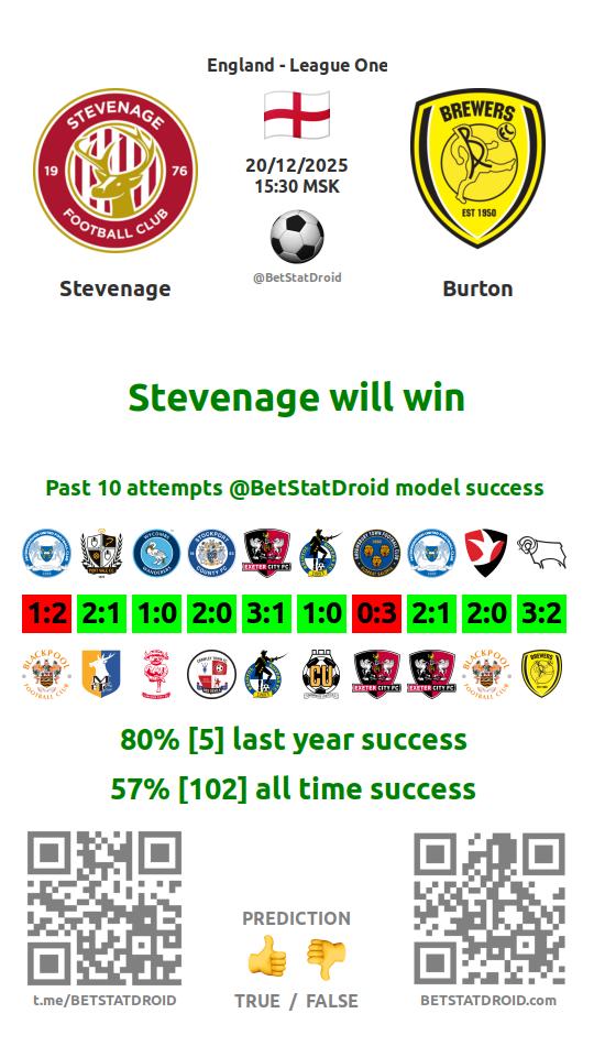 ✔ Стивенидж пропускает меньше 2,5 голов в 22 матчах