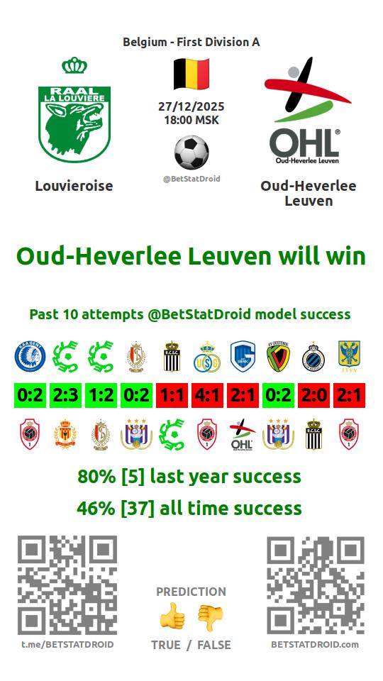 ✔ Ла-Лувьер забивает меньше 2,5 голов в 27 матчах