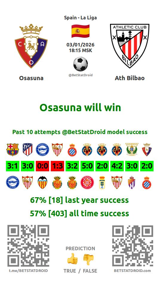 ✔ Осасуна забивает меньше 2,5 голов в 28 матчах