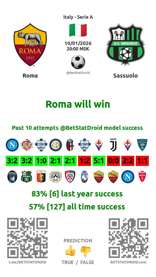 ✔ Рома пропускает меньше 2,5 голов в 45 матчах