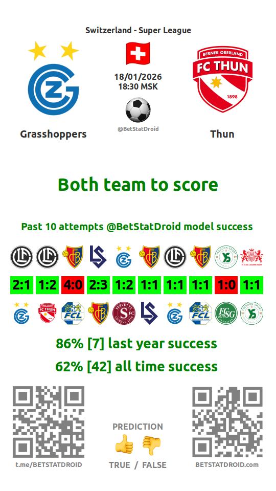 ✔ Грассхоппер забивает меньше 2,5 голов в 18 матчах