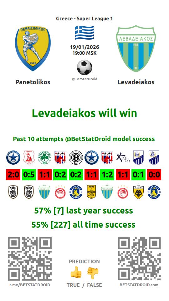 ✔ Левадиакос забивает меньше 2,5 голов в 11 матчах