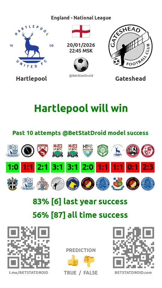 ✔ Гейтсхед забивает меньше 1,5 голов в 5 матчах