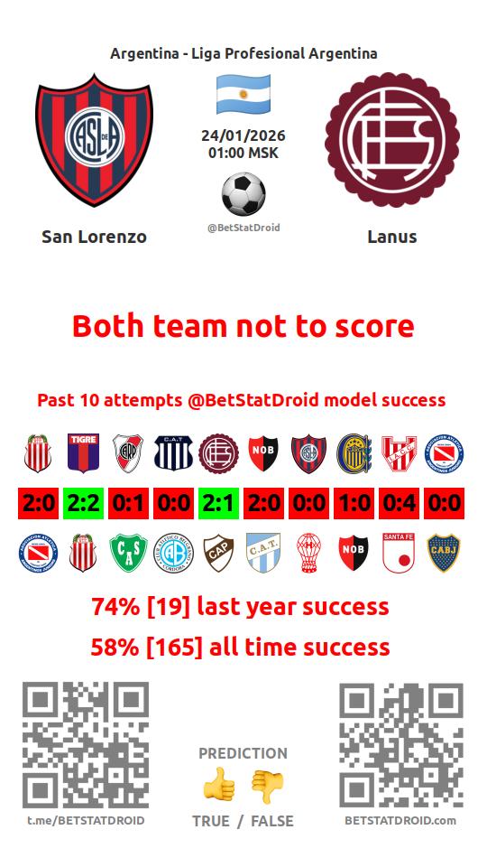 ✔ Сан-Лоренсо забивает меньше 2,5 голов в 28 матчах
