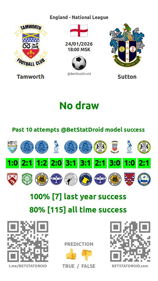 ✔ Саттон Юнайтед забивает меньше 1,5 голов в 5 матчах