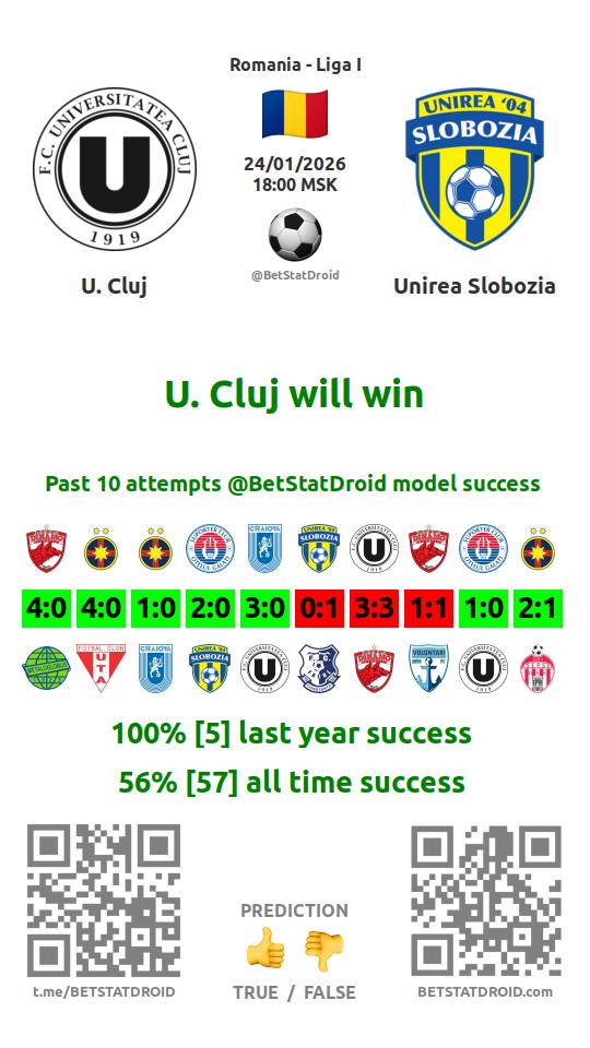 ✔ Университатя Клуж пропускает меньше 2,5 голов в 28 матчах