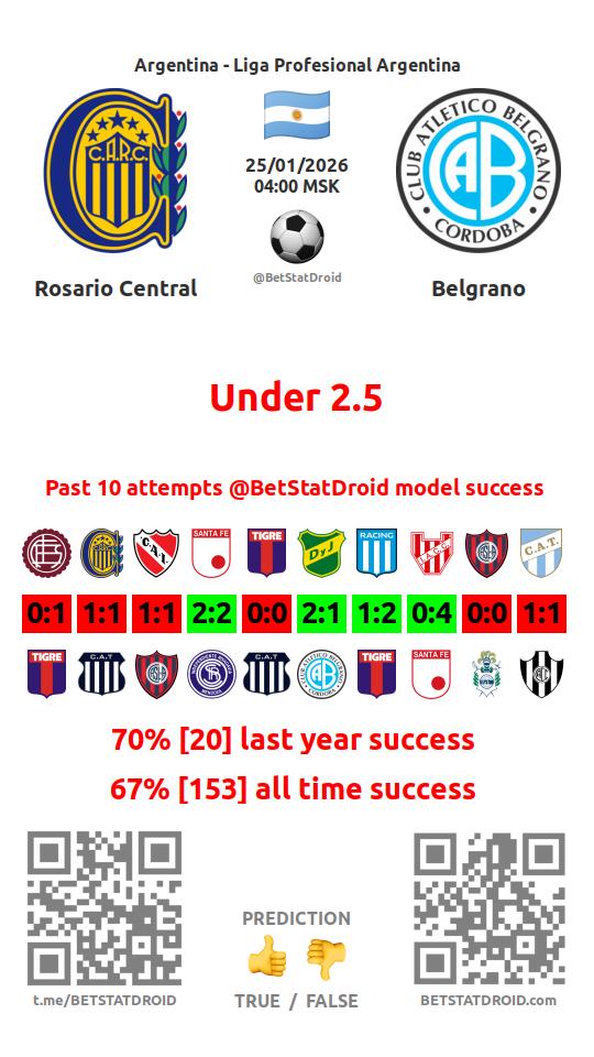 ✔ Росарио Сентраль пропускает меньше 2,5 голов в 47 матчах