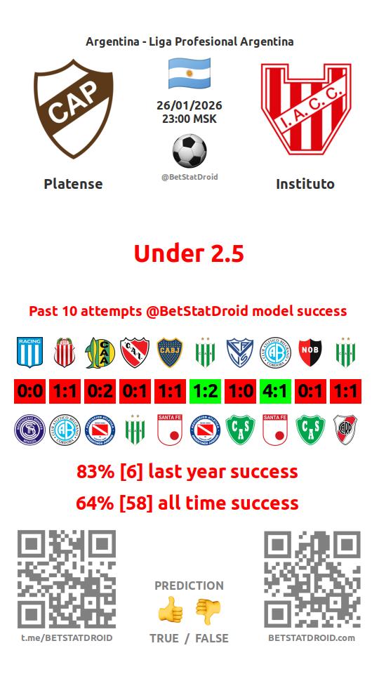 ✔ Институто забивает меньше 2,5 голов в 20 матчах