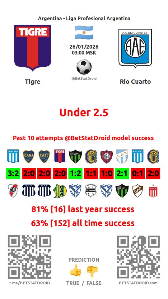 ✔ Тигре пропускает меньше 2,5 голов в 41 матчах