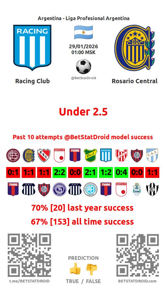 ✔ Росарио Сентраль пропускает меньше 2,5 голов в 36 матчах