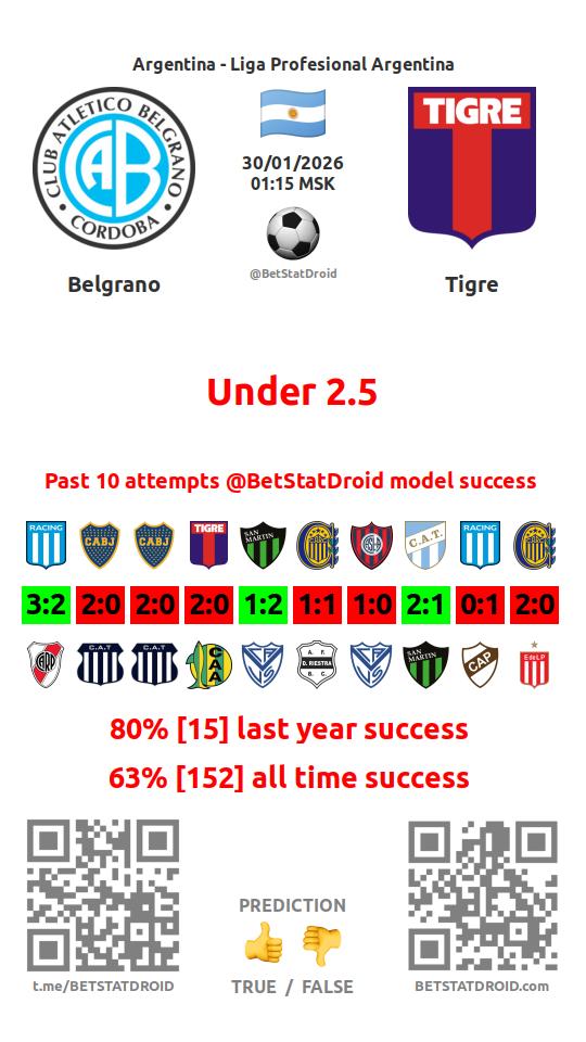 ✔ Бельграно забивает меньше 2,5 голов в 9 матчах