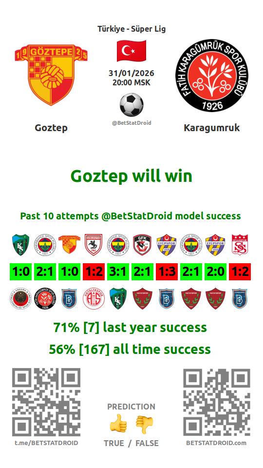 ✔ Фатих Карагюмрюк забивает меньше 2,5 голов в 30 матчах