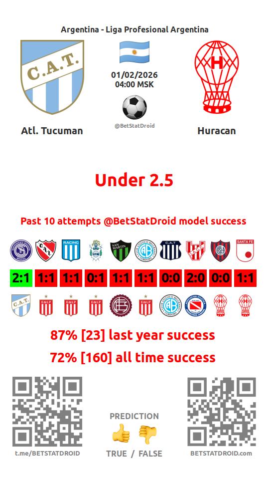 ✔ Атлетико Тукуман забивает меньше 2,5 голов в 14 матчах