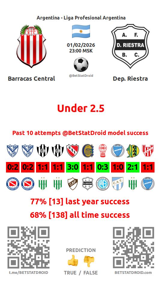 ✔ Барракас Сентраль забивает меньше 2,5 голов в 16 матчах