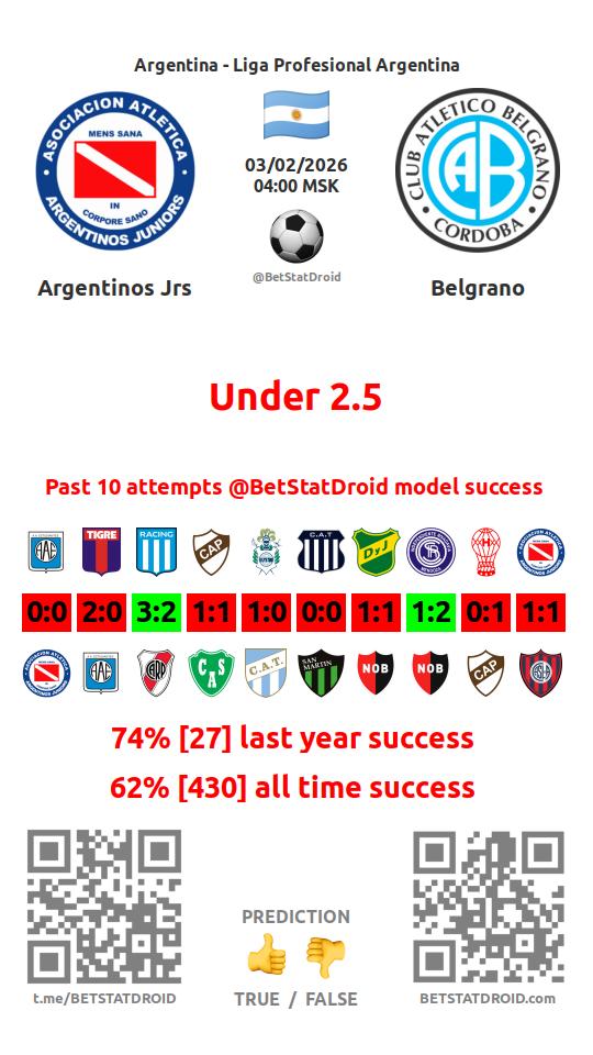 ✔ Бельграно пропускает меньше 2,5 голов в 12 матчах