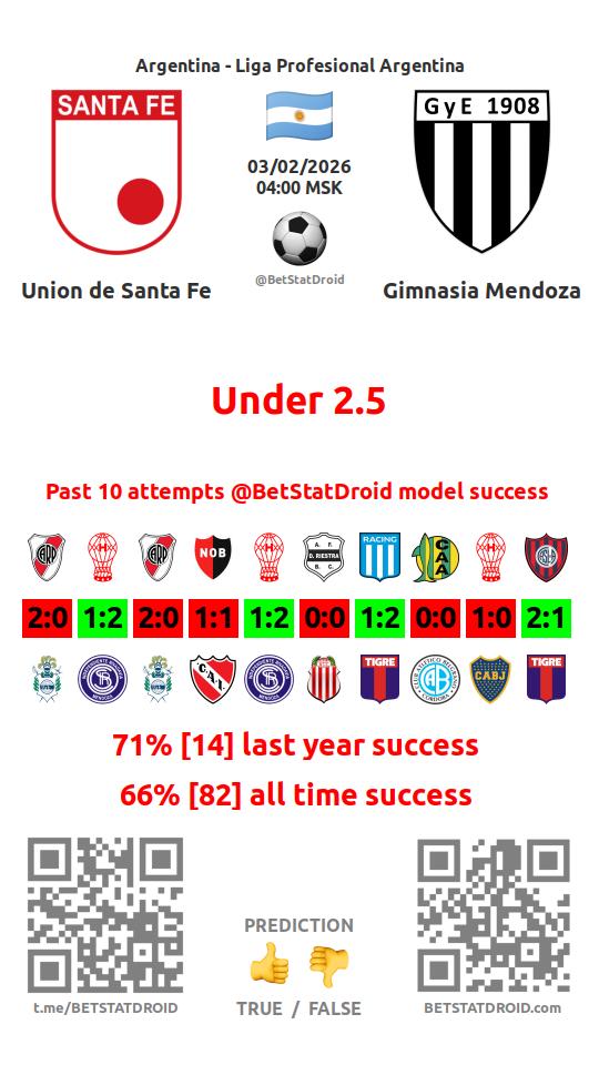 ✔ Унион Санта-Фе пропускает меньше 2,5 голов в 20 матчах