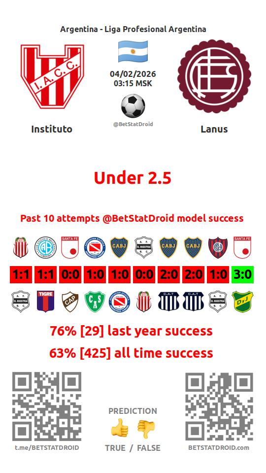 ✔ Институто забивает меньше 2,5 голов в 11 матчах