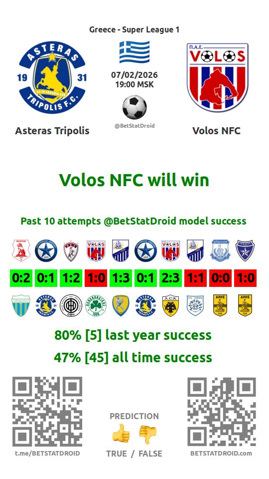 ✔ Волос забивает меньше 1,5 голов в 6 матчах