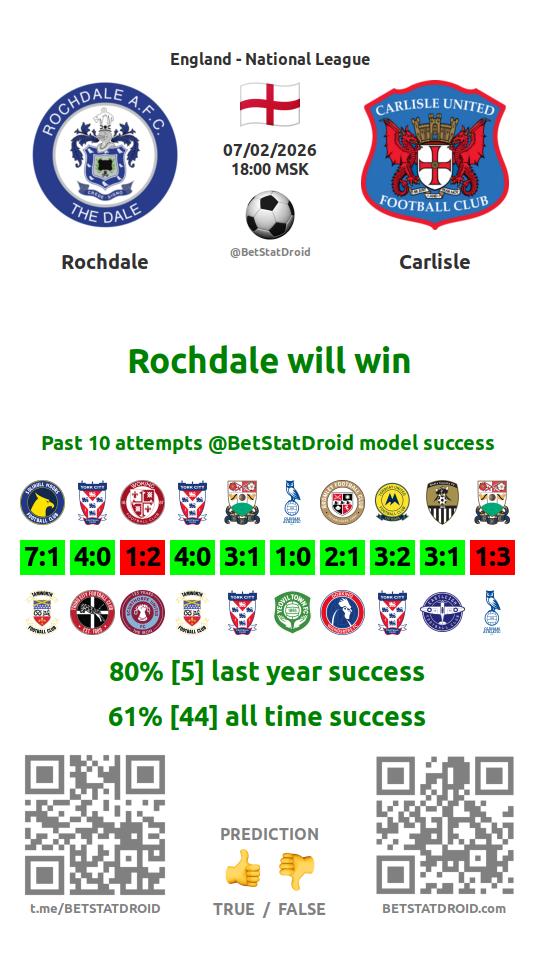 ✔ Рочдейл пропускает меньше 1,5 голов в 5 матчах