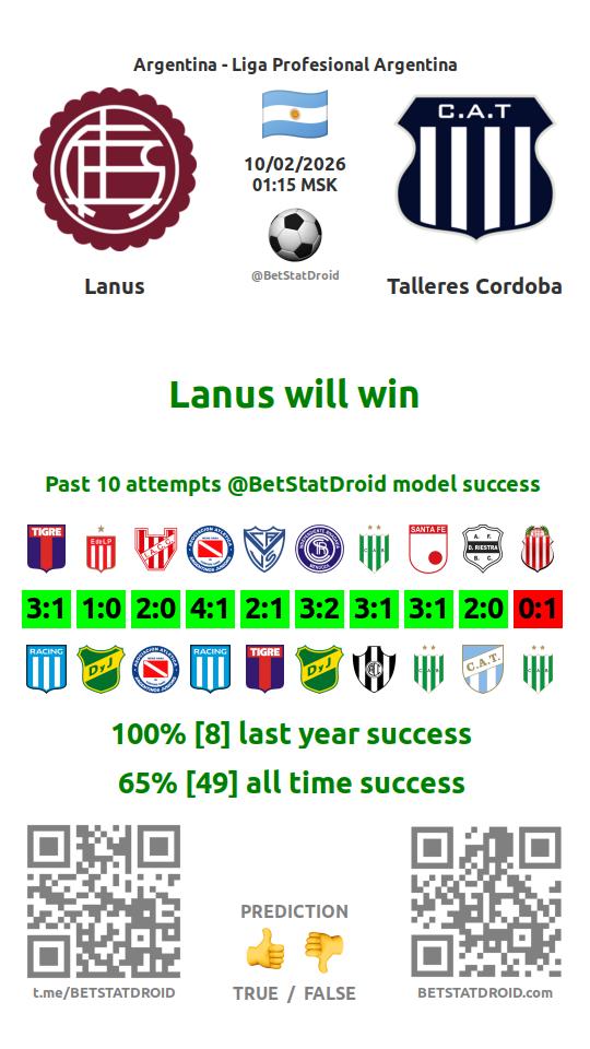 ✔ Ланус пропускает меньше 2,5 голов в 62 матчах