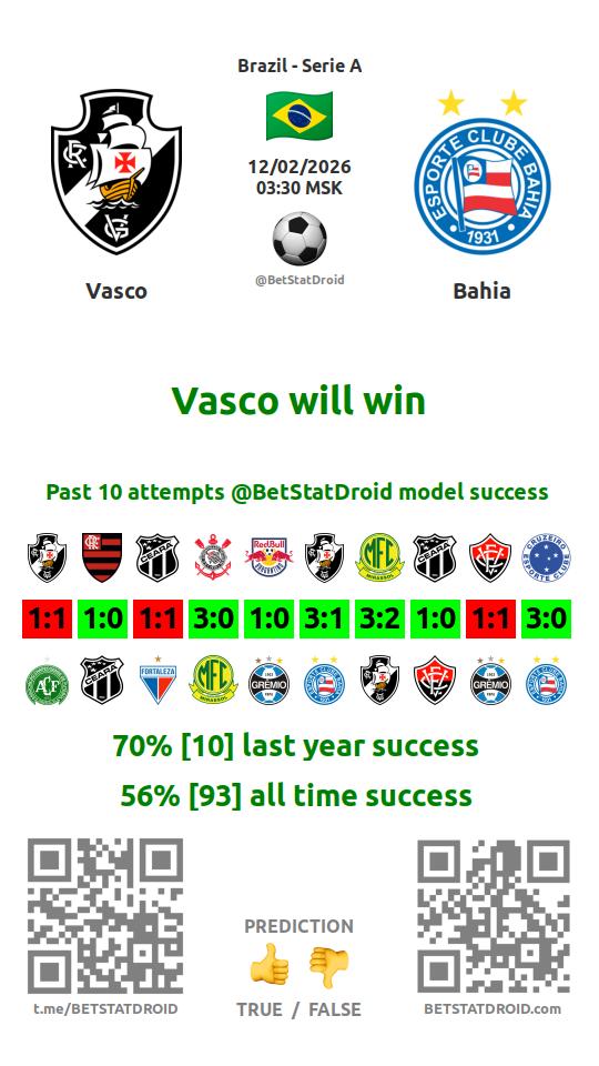 ✔ Васко да Гама забивает меньше 1,5 голов в 6 матчах