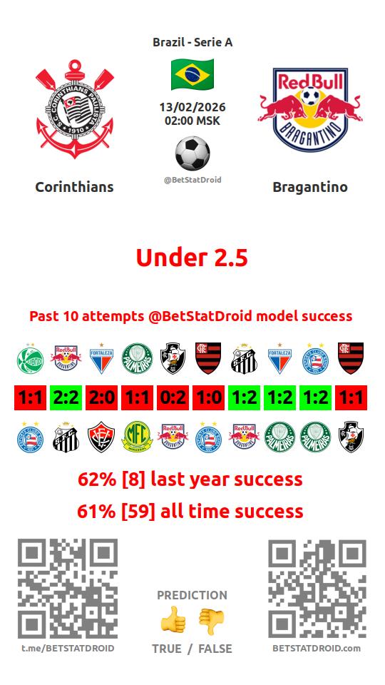 ✔ Коринтианс забивает меньше 2,5 голов в 12 матчах