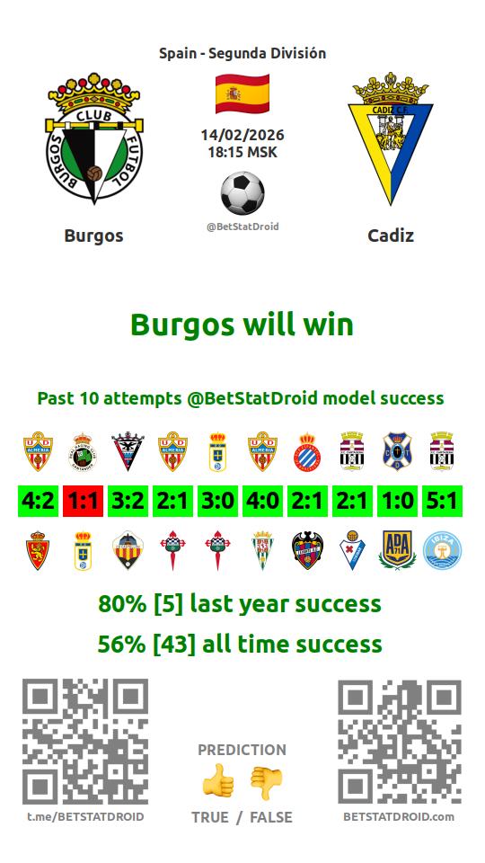 ✔ Бургос забивает меньше 2,5 голов в 15 матчах