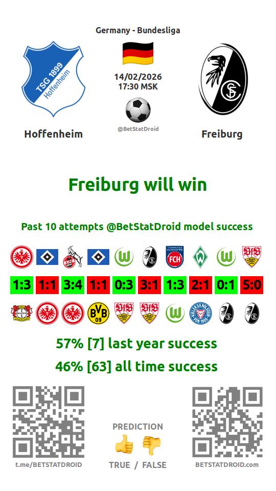 ✔ Хоффенхайм пропускает меньше 1,5 голов в 8 матчах