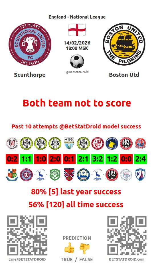 ✔ Сканторп пропускает меньше 2,5 голов в 14 матчах