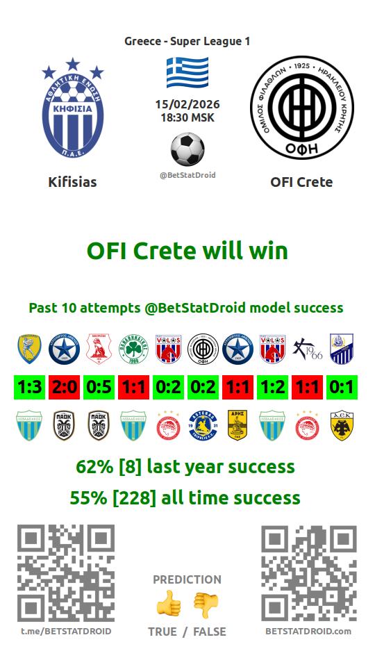 ✔ Кифисия не выигрывает в 7 матчах