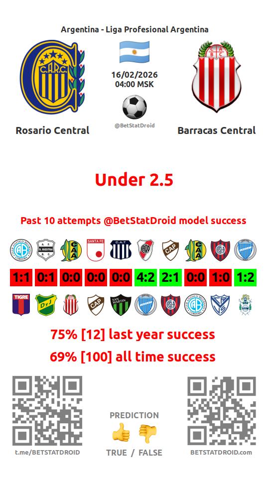 ✔ Росарио Сентраль пропускает меньше 2,5 голов в 40 матчах