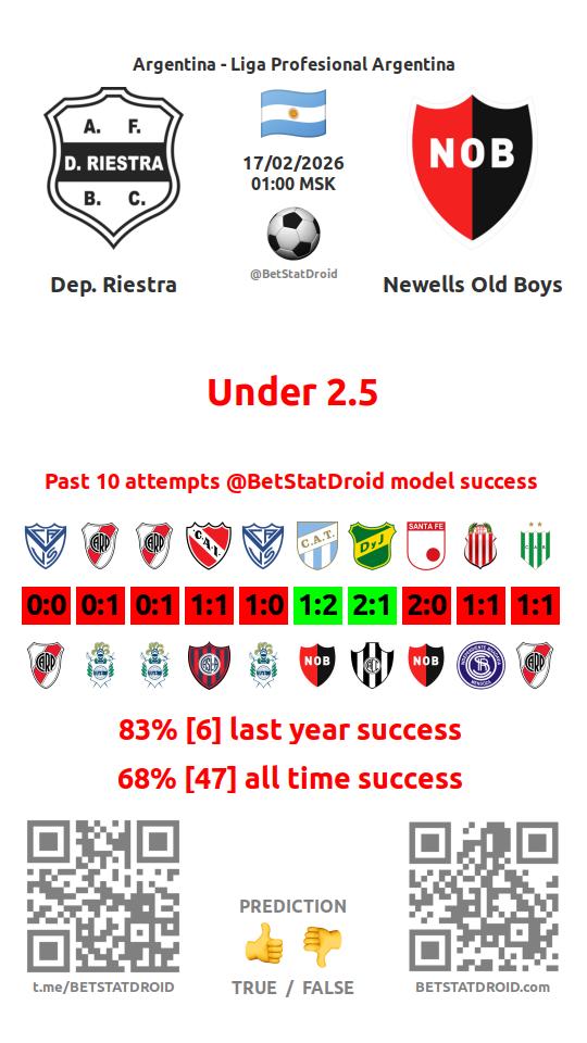 ✔ Ньюэллс Олд Бойз забивает меньше 2,5 голов в 18 матчах