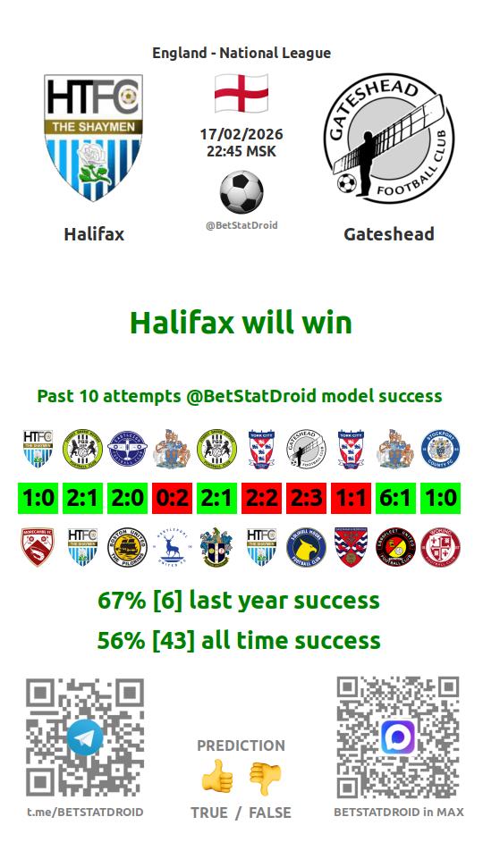 ✔ Галифакс Таун пропускает меньше 2,5 голов в 16 матчах
