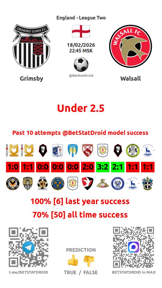 ✔ Гримсби пропускает меньше 2,5 голов в 16 матчах